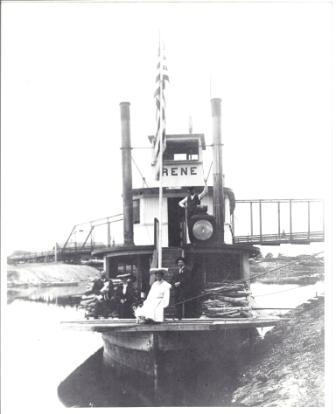 The Fawn (1882 - 1894) made the trip to Grand Rapids and back in one week. For its final two years it was used by Weyerhauser Co. towing logs and breaking log jams. In 1894 it struck a snag below Swan River and sank.Dimensions: L - 85' W - 14' D- 3' The stern wheeler Andy Gibson (1883 - 1892) was built by Edward Lowell, Lee West and Fred Bonness. It was constructed during the winter of 1883, reaching 130' in length. The boat apparently drew only 12 inches when unloaded and 24 inches fully loaded. Later, when her length was extended to 140', she could haul 150 passengers and 100 tons of freight. She caved in many banks of the river as she was too long for the sharp bends of the river. Her captain and builder was Captain Bonness. Captain Bonness stayed with the Gibson until 1886 when one of her three co-builders took the helm. She was purchased by Potter Co. in 1891 and was used in logging operations. She was retired in 1892 and her machinery was removed and the boiler was used in the heating systems of the Potter store. Dimensions: L - 140' W - 32' D- 2' |