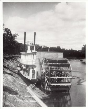 The City of Aitkin (1878 - 1883) was built in 1878 by Captain George Houghton for service between Aitkin and Grand Rapids. In 1879 it made only five trips because of low water. It carried 120 passengers and 150 tons of freight. On September 4, 1883, it began to list and finally sank at its dock due to falling water level in the Mississippi. Dimensions: L - 120' W - 22' D- 2'